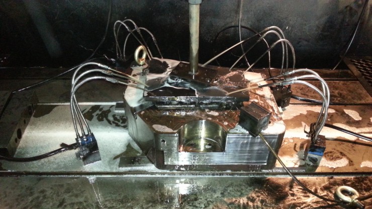 다이캐스팅 금형다이 일체형 통방전 가공중, 가공후